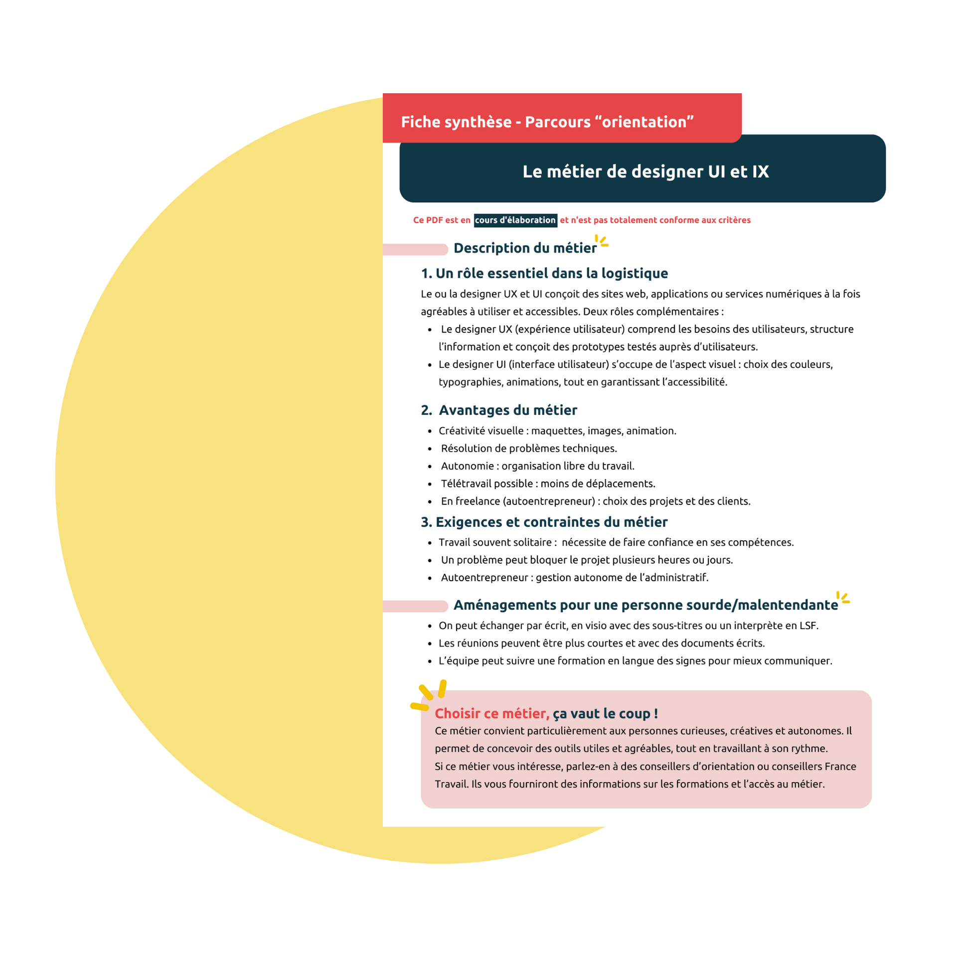 pour comprendre la surdité, l’orientation et l’intégration professionnelle. - En groupe, en temps de sensibilisation :